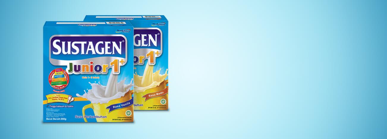 Sustagen Junior 1+ adalah susu pertumbuhan yang diformulasikan oleh Mead Johnson untuk anak usia 1-3 tahun yang mengandung nutrisi tinggi seperti Zinc, Zat Besi, Asam Folat, Tiamin dan Vitamin B12.